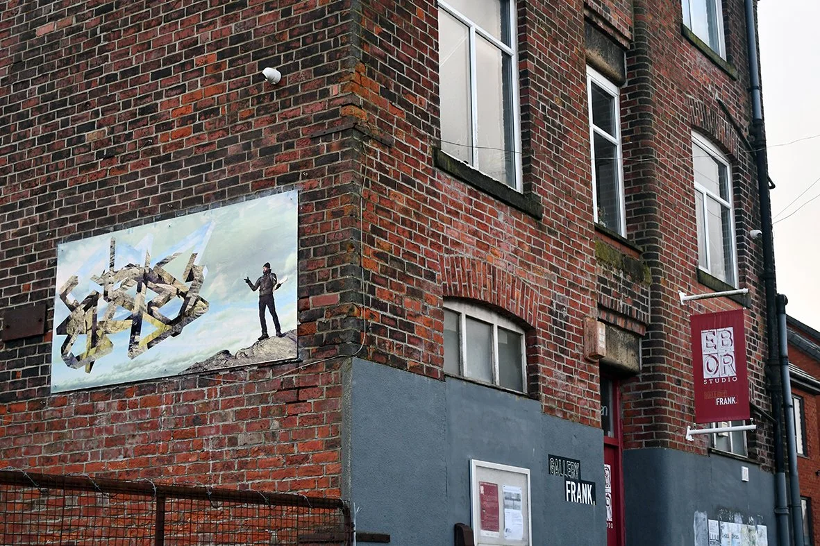 #protectthenhs, April 2020, was the very first display on our billboard. It was a responsive work which was painted directly on to the aluminium by Martha Lyons Haywood. #protectthenhs was exhibited at a time when Ebor Studio was only open to members of one family; it was a way to connect with the outside world and our artist members who couldn’t access their studios, a way to show appreciation to the NHS workers who were saving lives and risking their own every day, and a way to exhibit art when there were very few ways to do so.